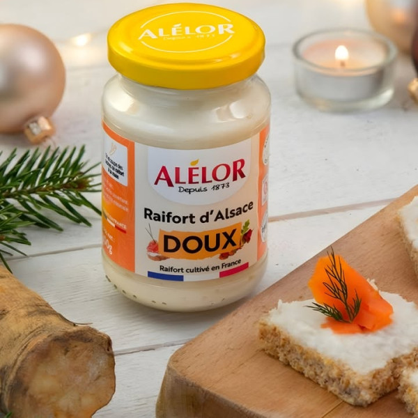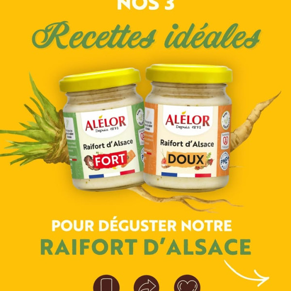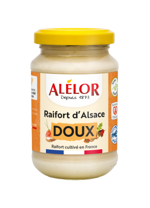 Condiment incontournable de la gastronomie alsacienne, le raifort se consomme toute l’année. Sa saveur riche et épicée, et son goût piquant mais pas brûlant, en font un exhausteur de goût naturel. Il relève viandes, poissons, sauces et légumes. Alélor soutient la filière locale des racines de raifort en Alsace depuis plus de soixante ans.