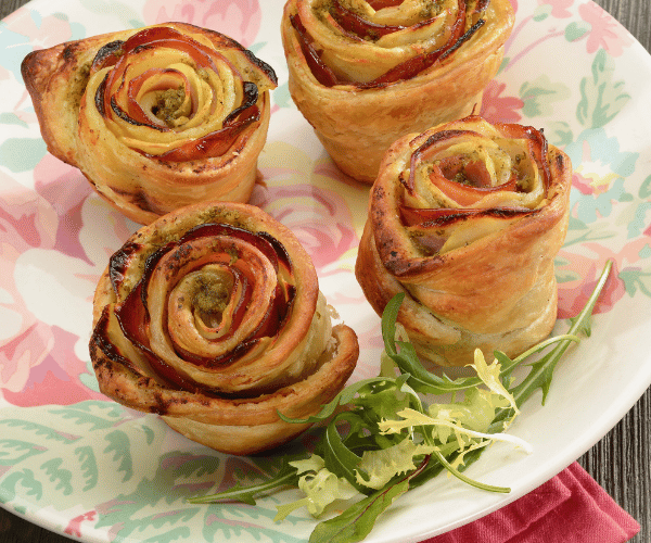 Plat : Rose feuilletée aux pommes de terre, bacon et Pesto à l'Ail des Ours