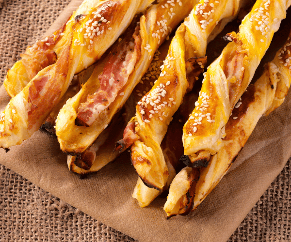 - Étaler la pâte feuilletée et la couper en deux parties égales.